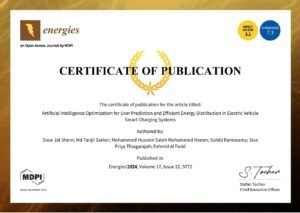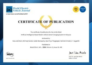 - Shern, S. J., Sarker, M. T., Ramasamy, G., Thiagarajah, S. P., Al Farid, F., & Suganthi, S. T. (2024). Artificial Intelligence-Based Electric Vehicle Smart Charging System in Malaysia. World Electric Vehicle Journal, 15(10), 440. https://doi.org/10.3390/wevj15100440