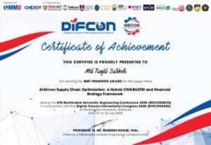- Sarker, M. T., Sadeque, M.G, Al Qwaid, M., Siddiquee, K.N.A, Karim, H. A. (2026). Modeling and Performance Evaluation of Hybrid SLB-PV Systems for Sustainable Telecom Tower Power Supply in Bangladesh, Energy Report, Accepted for Publication.