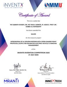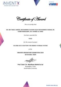 - Sarker, M. T., Hossen, M. S., Ramasamy, G., Al Qwaid, M., Karim, H. A. (2026). SLB-Based Energy Storage for Solar-Integrated Charging Stations in Tropical Regions, Scientific Reports, Accepted for Publication.