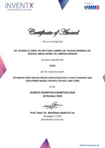 - Barman, S., Farid, F. A., Raihan, J., Khan, N. A., Hafiz, M. F. B., Bhattacharya, A., Mahmud, Z., Ridita, S. A., Sarker, M. T., Karim, H. A., & Mansor, S. (2024). Optimized Crop Disease Identification in Bangladesh: A Deep Learning and SVM Hybrid Model for Rice, Potato, and Corn. Journal of Imaging, 10(8), 183. https://doi.org/10.3390/jimaging10080183
